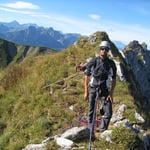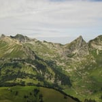 Nach einem gemütlichen Frühstück starteten über den Pass Pertet à Booets in Richtung Jumelle. Nach dem Fiasko am Sonntag entschieden wir uns auf dem Wanderweg weiter unten zu gehen, um dann gerade hoch zur „Küche“ der Jumelle wieder aufzusteigen. Doch auch dieser Weg war nicht der einfachste, es waren nur immer Fragmente von Spuren zu finden. So kämpften wir uns gerade über den Grashang hoch.