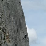 Nach der Mittagspause probierten wir uns noch an der Aisha (6a+/5SL), die etwas neuere Route neben der Arête SE. Diese war deutlich anspruchsvoller aber ungemein genial zum Klettern. Bei der mittleren Abseilstelle machten wir schliesslich Schluss, seilten herunter und machten uns auf den Rückweg zum VW-Bus.