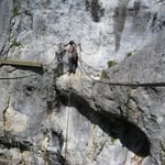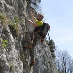Es war April, das Wetter prächtig, in den Bergen jedoch zuviel Schnee um auf Touren zu gehen. Was lag näher, als sich zu Saisonbeginn in einem Klettersteig zu üben? Tanja und ich nutzten die Gelegenheit, das nahegelegene französische Juragebiet ein wenig kennen zu lernen. Es erwartete uns ein top ausgebauter, niveaureicher Steig in einer wunderschönen Umgebung.