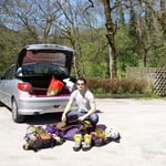Damit wir uns nach der Begehung des Klettersteigs gemütlich ausruhen konnten, reservierten wir im Voraus ein Zimmer im Hotel de la Vallée in Ornans. Danach gelangten wir in zehn Minuten Autofahrt nach Nans-Sous-Saint-Anne, wo wir auf dem öffentlichen Parklatz neben der Kirche das Auto abstellten. Hier war auch der Ausgangspunkt der Tour. Ein Hinweisschild zeigte den Weg Richtung Felsen und wenig später folgte eine Metallkasse wo die Eintrittsgebühr von zwei Euro pro Person bezahlt werden musste. Dieses Entgelt wurde für die Instandhaltung des Pfades eingesetzt.