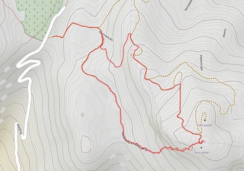Parkplatz Steinplatte (1370 m) - Stallenalm (1400 m) - Einstieg Schuasta Gangl (1650 m) - Steinplatte (1869 m)