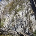 Von einem älteren Kletterkammeraden nahmen wir die Empfehlung an, an dem nahe gelegenen Kletterspot Bonnes Fontaines den Nachmittag zu verbringen. Dort würde bestimmt weniger Betrieb sein und auch die Steinschlaggefahr war aufgrund der Lage sicherer.