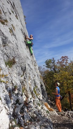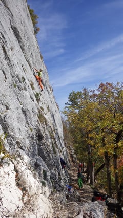 Spätsommerliches Klettern an löchrigen Felsen, welche an Südfrankreich erinnerten.