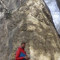Da es seit längerer Zeit unsere erste Route ausserhalb der Kletterhalle war, kletterten wir uns erst am Petit pilier (5b) ein. Obwohl die Sonne bereits einige Teile der Felswand beschien, war es immer noch ein eisig kalter Januartag. Nach der ersten Seillänge der Joe Brown hatte ich kalte Finger, dafür war mir im Rest des Körpers heiss! Es gab die eine oder andere Stelle, die ein wenig Kraft benötigte!