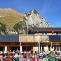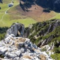 Nach rund 20 Meter Abseilen querten wir hinüber zum rot-weissen Wanderweg, welcher uns wieder zurück nach Gamplüt führte. Noch immer war es sommerlich warm und das Bergrestaurant entsprechend mit vielen Bergtouristen gefüllt. Bei einem Saft von Möhl, begleitet von einer One-Man-Band, genossen wir auf der grossen Terrasse die Sonne und freuten uns über den gelungenen Tag.