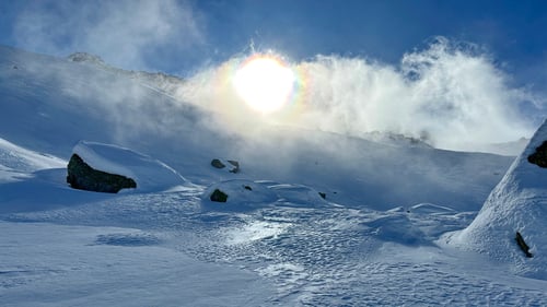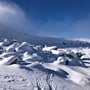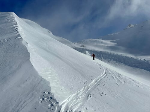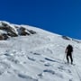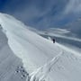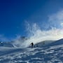 Auf dem Kamm des Bidmers blies es uns fast davon. Die Temperaturen lagen etwa bei -10 Grad und der verwehte vom Wind hartgedruckte Firn lud nicht zur freudigen Abfahrt ein. Kurz unter dem Gipfelkreuz des Mannlibodens entschieden wir umzudrehen. Während des Abfellens bliesen uns die Windböen beinahe um. Es war saukalt.