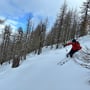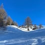 Die Fahrt hinunter war lustig und in den Mulden fanden wir auch einige sehr gut zu befahrende Pulverhänge. Abenteuerlich ging es durch dichte Bäume und auch Gestrüpp, bis wir schliessen bei Pt. 1403 oberhalb von Chruzriti aus dem dicken Dschungel raus- und den Hügel zum Bahnhof von Gluringen runterfuhren.