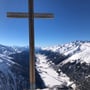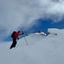 Der Weg bis zum erstrebten Gipfelkreuz bei Pt. 2506 war nicht mehr weit. Dort angekommen, genossen wir das sonnige Wetter und die Weitsicht in alle Richtungen. Dann machten wir uns startklar und brachen auf zu einer sensationellen Abfahrt.
