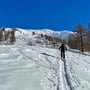 Für den Aufstieg folgten wir mehr oder weniger der Abfahrtslinie der SAC beschriebenen Skitour. Schliesslich trafen wir auf den Wanderweg und stiegen durch dichten Wald den Berg hoch. Teilweise waren die Waldabschnitte so dicht, dass wir uns fragten, wie wir hier wohl wieder runter kommen würden.