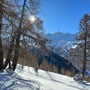 Der Weg zum Hotel war mit Neuschnee bedeckt. Ich trat meine Spuren in das neue Weiss und schritt durch das kleine, unverfälschte Bergdorf mit sehr viel Charme. Das schöne ist, dass hier wirklich alles noch seine Ursprünglichkeit hat und keine modernen Gebäude in der 145 Seelengrossen Gemeinde erbaut wurden.