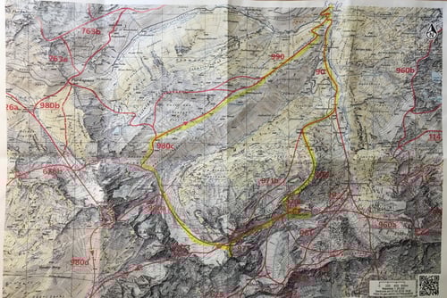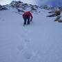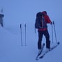 Beschwerlich kam dazu, dass wir uns nun im Nebel bewegten und die Sicht sehr beschränkt war. Schliesslich nahmen wir das Navi zur Überprüfung unseres Standorts hervor. Es zeigte, dass wir uns nahe der empfohlenen Route befanden, jedoch unterhalb eines Buckels zu tief in der Flanke.