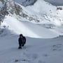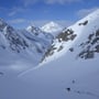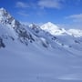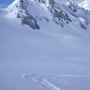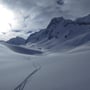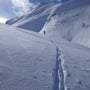 Die Abfahrt über den Muttengletscher war herrlich. Sonnenschein, Pulverschnee, keine Spuren! Ein echtes Bijou dieser Region. In der Ebene montierten wir die Felle wieder auf die Skier und stiegen im Zickzack im Gebiet Deieren Älpetli bis auf eine Höhe von etwa 2'650 Meter hoch. Dann fuhren wir auf der Höhenlinie unterhalb des Stotzigen und Schattigen Firsten in Richtung Nordosten.
