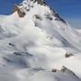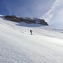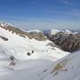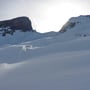 Die Traverse in der Westflanke des Siwfass war nicht ganz ohne. Wir gingen mit einem angemessenen Abstand hoch bis zum Gipfel. Hier zogen wir die Felle ab und machten uns startklar für die Abfahrt.