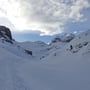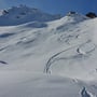 Doch auf diesen Gipfel waren eh viel zu viele Tourengänger unterwegs! So machten wir uns auf, am Spilauersee vorbei in die frisch verschneiten Hänge des Hagelstocks. Dank des gestrigen Schneefalls und dem Nordwestwind, waren alle Hänge um uns herum noch unberührt. Dies würde eine traumhafte Abfahrt werden!