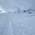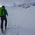 Nach einigen Aufstiegsmetern in den Skischuhen erreichten wir wieder den Sisitzgrat. Von hier an war die Schneequalität weniger gut. Entsprechend gemütlich folgten wir der Aufstiegsspur und bogen wenig später östlich zu den Marchböden ab.