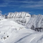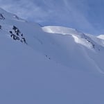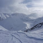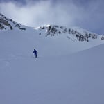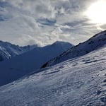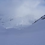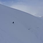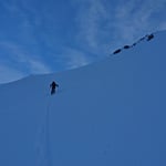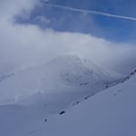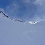 Leider waren die Schneedeckenverhältnisse nicht überall optimal. So brachen wir öfters in die harte Oberfläche ein und blieben mit den Skies hängen. Jene Hänge, welche mit pulverigem Treibschnee versetzt waren, gefielen uns schon viel besser.