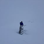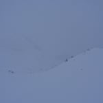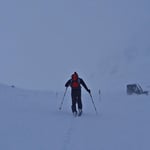 Immer wieder hielten wir inne und kontrollierten unsere Position über das GPS. Es war eine Abfahrt mit Null-Sicht! Teilweise wussten wir nicht ob es rauf oder runter ging. Einzig ein paar Felsblöcke gaben uns Hinweise in welche Richtung wir uns bewegten. Und trotzdem machte die Abfahrt Spass!