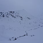 Ausschlafen - ja ausschlafen! Zu früh loszugehen machte heute keinen Sinn. Draussen war es nebelig, es schneite und es ging ein starker Wind. Zudem lagen nur 300 Höhenmeter Aufstieg vor uns. Nach dem Frühstück liefen wir um 08:30 Uhr gemütlich los. Die Wetterverhältnisse waren nicht optimal, doch wir wollten es trotzdem versuchen. Den Piz Cavradi würden wir sicher erreichen, wie es dann weitergehen würde, sollte die Situation vor Ort zeigen.