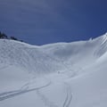 Zu unserer Überraschung war der Schneefall der letzten Tage doch reichlichd. So konnten wir uns über die Abfahrten in unbefahrenen Hängen freuen. Um 12:45 Uhr erreichten wir nach flotten 2.5 Stunden das Skidepot des Piz Lagrev. Vom Weitergehen auf der Krete bis zum eigentlichen Gipfel sahen wir ab. Zu viel Schnee lag auf dem Grat und an der Flanke. Es wäre ein Schneewühlen sondergleichen gewesen ohne wesentlichen Mehrwert. Denn irgendwie hatte der Grat auf der Karte spektakulärer ausgesehen als bei den vorliegenden Bedingungen. So hatten auch keine anderen Skitourengänger an diesem Tag den Hauptgipfel besucht.