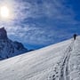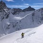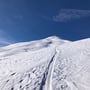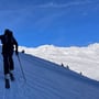 Doch erst mussten die knapp 900 Höhenmeter erst einmal bewältigt werden. Nach rund eindreiviertel Stunden erreichen wir das Gipfelkreuz. Die Rundumaussicht war traumhaft. Aber noch besser war die anschliessende Abfahrt im Pulverschnee. Besser konnte man sich eine Skitourenabfahrt nicht wünschen.
