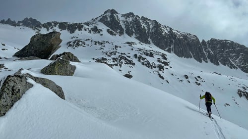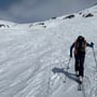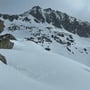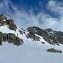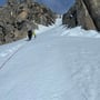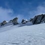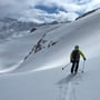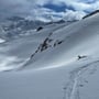 Uns stach schliesslich schon bald ein Couloir an der Westflanke des Tiarms ins Auge, welches einen spannenden Aufstieg auf den Gipfelgrat versprach. Entsprechend steuerten wir die Stelle bis unterhalb des Felsfusses an.