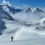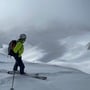 In der anschliessenden Abfahrt steuerten wir das Gitziälpetli an und trafen dabei zu unserer Freude auf gute Schneeverhältnisse. Doch hier erkannten wir, dass die Wetterverhältnisse im Westen einiges schlechter waren als im Osten. Vor allem die Sicht aufgrund des Nebels war dort nicht gegeben.