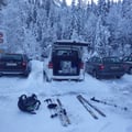 Nun gab es erst einmal Frühstück. „Kalter“ Kaffee, Zopf, Butter, Konfitüre und was sonst noch alles dazugehört. Dann ab in die Tourenkleider und Skischuhe. Schliesslich kam auch schon der „Schneeschnitzi“ gefolgt von weiteren Autos mit Tourengängern.