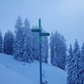 Um 05:45 Uhr fuhren wir schliesslich los nach Hinter Klöntal. Auf der engen Strasse lag rund 30 cm Neuschnee und wir waren froh, die Ketten bereits montiert zu haben. Ab Hinter Richisau (1135 m) war schliesslich die Pragelstrasse geschlossen. Der dortige Parkplatz war komplett zugeschneit. Mit ein wenig „Anlauf“ glitten wir in den grossen Parkplatz rein.