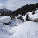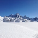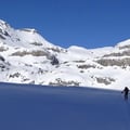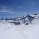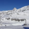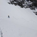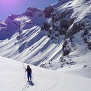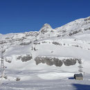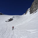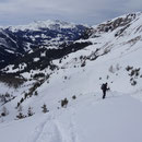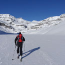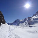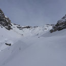 08:10 Uhr. Die vollgefüllte Gemmi-Seilbahn fuhr los. Kein Wind - perfektes Wetter. Auf den Skiern ein paar Höhenmeter runter auf den Jägerboden, anfellen und los ging die Tour in der bezaubernden Winterlandschaft. Bald erreichten wir die Schneise in der Nähe des Punkt 2320. Von hier konnten wir leicht bekleidet weitergehen - die Sonne präsentierte uns einen Supertag!