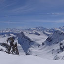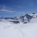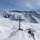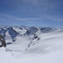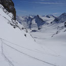 Der Rundumblick vom Grossstrubel 3243m auf die Berge und Täler war phantastisch. Nur der Wind und die Temperaturen luden nicht zum Verweilen ein. So fuhren wir ein Stückchen runter und verpflegten uns im Windschatten.
