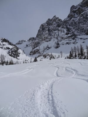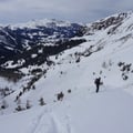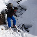 Vor uns lagen über 2000 Höhenmeter Abfahrt hinunter nach Zelg. Nach den ersten verblasenen und stark befahrenen Hängen folgten bald einsame Pisten in der selten begangenen Abfahrtsroute hinunter ins Ammertetal. Der Schnee hatte sehr viele verschiedene Eigenschaften und verlangte uns alles ab!