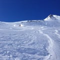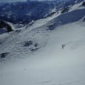Hier entdeckten wir nordöstlich eine top Abfahrtsroute mit guter Schneequalität, welche uns direkt zurück nach Oberstafel führen würde. Die Entscheidung viel einstimmig: Hier würden wir runterfahren.