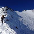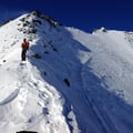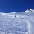 Um 07:00 Uhr liefen wir los. Die Sonne schien bereits über die umliegenden Bergspitzen hinweg zu uns. Der Aufstieg über den Witenwasserengletscher auf den Witenwasserenstock ist technisch sehr einfach. Wir stiegen hoch in Richtung Pt. 2908, wo wir wenig später die Skier deponierten und den Schlussaufstieg zum Ostgipfel (3025m) über den Kamm vornahmen.