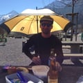 Für heute hatten wir beide genügend Sonne getankt. Unser Tourenbierli und Mittagessen nahmen wir auf der Autobahnraststätte im Sonnenschutze von Regenschirmen zu uns. Dabei streiften uns zahlreiche fragende Blicke anderer Leute, welche sich gemütlich in der Sonne sonnten.