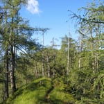 Nach einer Stunde erreichte ich den ersten Gipfel (1092m) und machte in den angenehmen Sonnenstrahlen erst mal eine ausgiebige Frühstücksrast. Dann ging es in einer weiteren halben Stunde zum zweiten, mit 1181m der höhere Gipfel der beiden. Der Weg dahin, führte durch einen wunderschönen Fichtenwald, der an Märchenwelten erinnerte.