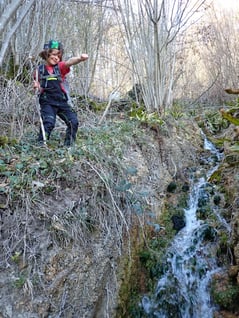 Emilia und Luca waren weniger beglückt sich durch das Dickicht zu schlagen. Vor allem Luca mit seiner Grösse hatte doch einiges zu bewältigen. Zurück im Bachbett folgte ein toller Abschnitt mit einigen Kletterpassagen dem Flussufer entlang.