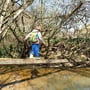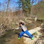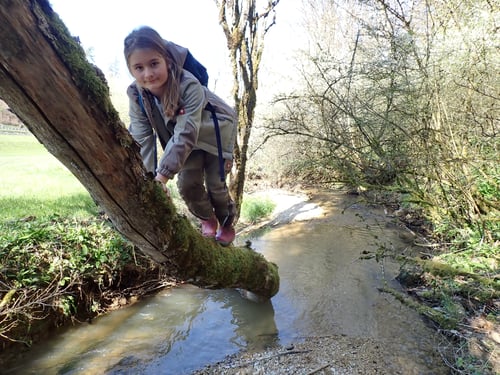Im Bachbett gab es wiederum viel zu entdecken. Doch was wirklich allen viel Spass machte, war das Überqueren von umgefallenen Baumstämmen, welche quer über das Bachbett lagen. Da konnte die Höhe schon mal über einen Meter betragen und das darunterliegende Wasserbecken versprach Nässe für den ganzen Körper!