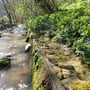 Von hier führte ein Betonflussbett weiter. Zu unserem Erstaunen und Freude, war dieses so angelegt, dass man bei normalem Wasserstand unbeschwert daneben herbeigehen konnte, weil die Bachmitte einiges tiefer ausgebaut war.