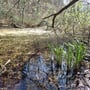 Wenig später hatten wir wieder klare Sicht auf den Bachgrund, dafür nicht mehr auf die Umgebung. Die Natur hinter der hier beginnenden Industriezone ist derart wild, dass ein Durchkommen fast nicht mehr möglich war. Die Waldfassade versteckt Moore, viele Tümpel und kleine Seen auf einem weitläufigen Gebiet, das zu Fuss kaum begehbar ist.