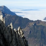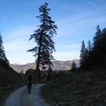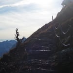Weiter ging es in Richtung „Nordwand“ des Fronalpstocks. In der Zwischenzeit hatten wir unsere Jacken und Faserpelze ausgezogen und liefen in der langen Unterwäsche weiter. Langsam verabschiedeten sich die grossen Fichten und knorrige Föhren standen am Wegrand Spalier. Immer wieder mussten wir kurz anhalten, um die Tiefblicke auf den Vierwaldstädtersee oder das Rigimassiv zu geniessen.