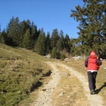 Weiter ging die Wanderung auf dem Gratweg hinunter zum Furggeli, wo wir im schattigen Tal in Richtung Stoos zurückwanderten. Im Hotel gab es dann einen guten wärmenden Kaffee und eine Geburtstagstorte mit Kerzen. Nach ein, zwei Saunagängen und einem Apéro mit echtem Champagner liessen wir den Abend bei gutem Essen ausklingen. Schwups schon war ich ein Jahr älter – so geht das!