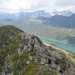 Entlang dem Stausee ging es dem Bergkamm entgegen. Unser erstes Gipfelziel war der Poncione d’Arbione (2409m), doch zuvor legten wir eine ausgedehnte Mittagspause an der Sonne ein.