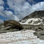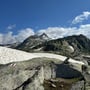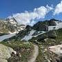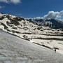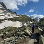Nur wenige Meter später verlor Tanja doch tatsächlich die Sole an ihrem rechten Wanderschuh. Wir wussten schon vor der Wanderung, dass es mal Zeit für neue Bergschuhe war. Doch nun war der Kauf Programm. Glücklicherweise geschah dies nicht als wir noch auf den Firnfeldern laufen mussten.