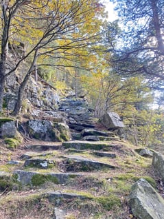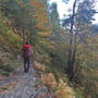 Der letzte Teil der Strecke verlief nochmals auf abgeschiedenen Pfaden. Wir durchstreiften die typischen Tessiner Kastanienwälder, folgten alten Pfaden entlang kalkiger Felsstufen und erfreuten uns am farbigen Herbstkleid, dass die Büsche, Bäume und Gräser trugen.