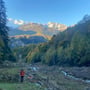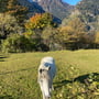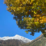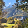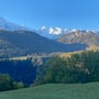 Das Wetter präsentierte sich wie von den Meterologen vorausgesagt sonnig und frisch. Die Luft war klar, der Himmel tiefblau, die Bergspitzen weiss und die Wälder farbig. Dieser Anblick würde uns die zwei Tage begleiten und immer wieder zum Anhalten, Hinsehen und Fotografieren verleiten.