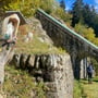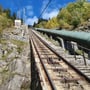 Kurz nach Airolo passierten wir die Ortschaft Madrano, ehe es einsamer im Wald entlang weiterging. Bald schritten wir unter dem Viadukt der Standseilbahn Ritom-Piora hindurch und staunten einmal mehr über dieses meisterhafte Bauwerk, welches bereits 1917 erbaut wurde und mit seiner Neigung von 87.8% eine der steilsten Standseilbahnen der Welt darstellt.