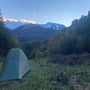 Ein Aufstehen mit Panoramablick auf Campolungo, Campo Tencia und Barone. Doch unser Rastplatz befand sich noch im Schatten, indessen die Berge bereits von der Sonne geküsst wurden. Die nächsten Stunden würden wir noch im Schatten verweilen, ehe uns die wärmende Sonne begrüssen würde.