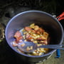 Am wärmenden Lagerfeuer gab es eine leckere Polenta mit Speck und Zwiebeln. Dazu den mitgeschleppten Rotwein und zum Dessert Schokolade und heissen Tee. Der sternenklare Himmel über uns trug die Gedanken in die Weite und ich hatte den Eindruck, die Kälte des Weltraums schiesst wie aus einer Giesskanne hinaus herunter auf uns. Ich war froh, als ich mich im warmen Daunenschlafsack verkriechen konnte.
