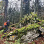 Immer wieder im Blickfeld waren die teils steil aufragenden, zerklüfteten Felsformationen der «Rochers du Droit», welche wir von den zahlreichen Kletterausflügen bestens kannten. Oberhalb von Grandval, peilten wir den Pt. 748 an und stiegen steil hoch, um zwischen der Combe des Geais und Combe de la Hue den Durchschlupf zum Hochplateau zu erreichen.