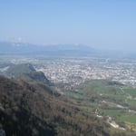 Kurze Rundwanderung auf den Nockstein, Blick auf Salzburg und das umgebende Hügelland.